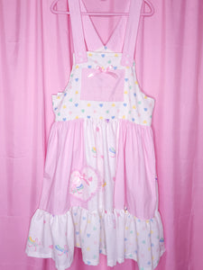 Rainbow Brite jumper skirt, 80's fairy spank kei heart gingham size Small
