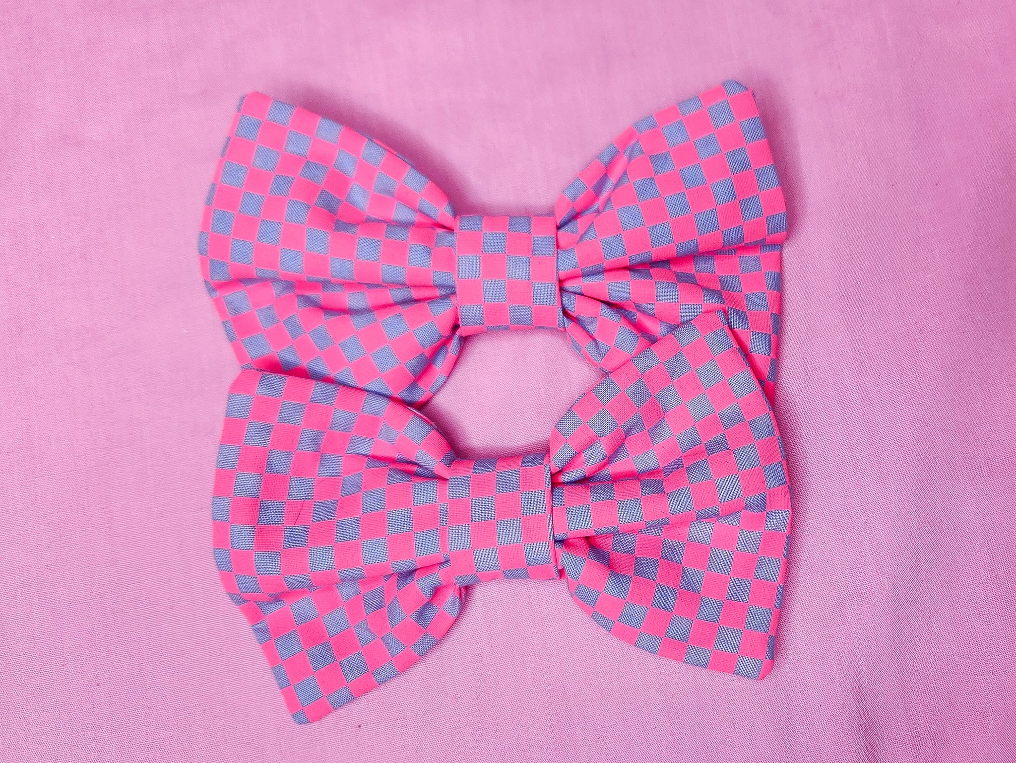 Hot pink/silver checkered hair bow, fairy spank kei, retro 80s 90s mall food court