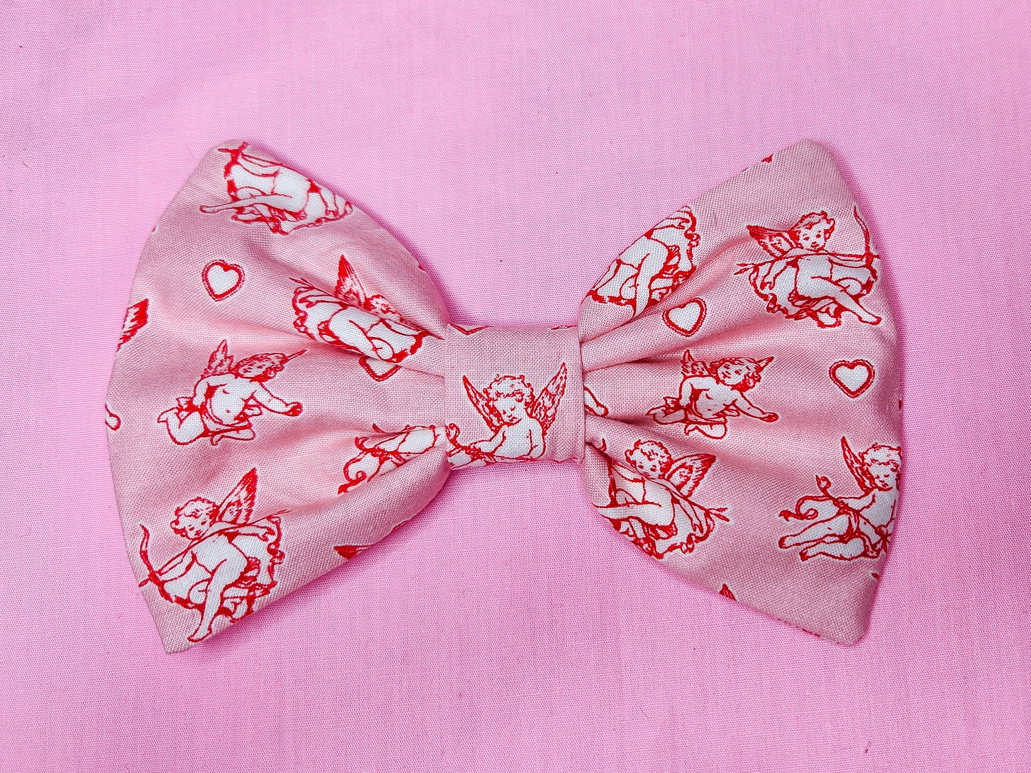 💖 MATERIALS: Pink quilting cotton with a classic red cupid print! Fastens with alligator clip. Wear in your hair, on your bags, or as a bow tie!