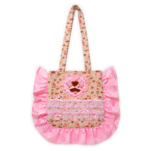 Valentine teddy bear treats ruffle tote bag, iridescent pink lace lovecore